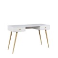 Biurko stworzone zostało dla osób ceniących sobie minimalizm, prostotę, klasykę oraz delikatny, wyważony kolorystycznie styl skandynawski. Wysokie nogi oraz szeroki blat, umożliwiają bardzo komfortową pracę przy biurku. Duża przestrzeń na blacie pozwala na ustawienie lampki lub innej dekoracji. Ilość szuflad celowo została ograniczona do dwóch by mebel swoją lekkością pięknie dopełniał każde pomieszczenie będąc jednocześnie funkcjonalnym biurkiem i ozdobą pokoju lub biura. Dwie szuflady zmieszczą niezbędne biurowe przybory a szeroka przerwa między nimi pozwala na przybranie wygodnej pozycji. Doskonałym uzupełnieniem mebla będzie zawieszana na ścianę półka, którą także znajdziecie w naszej ofercie w pasujących wersjach kolorystycznych i zachowanym minimalizmie.
