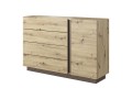 meble w prostej bryle i kompozycji, ozdobione dekorami w kolorze grafitu lub dębu grandson. Kolekcja w dwóch wybarwieniach ciepłym artisanie lub śnieżnobiałym białym połysku.
