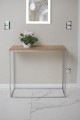 Konsola w minimalistycznym stylu loft idealnie wpisuję się w wystrój nowoczesnego wnętrza. Malowanie proszkowe zabezpiecza stal i nadaje estetycznego wyglądu. Stabilna metalowa konstrukcja o prostej formie idealnie sprawdzi się w minimalistycznym przedpokoju, loftowym salonie, biurze czy gabinecie. O wyjątkowści mebla stanowi ręczne wykonanie przy użyciu najwyższej jakości materiałów.