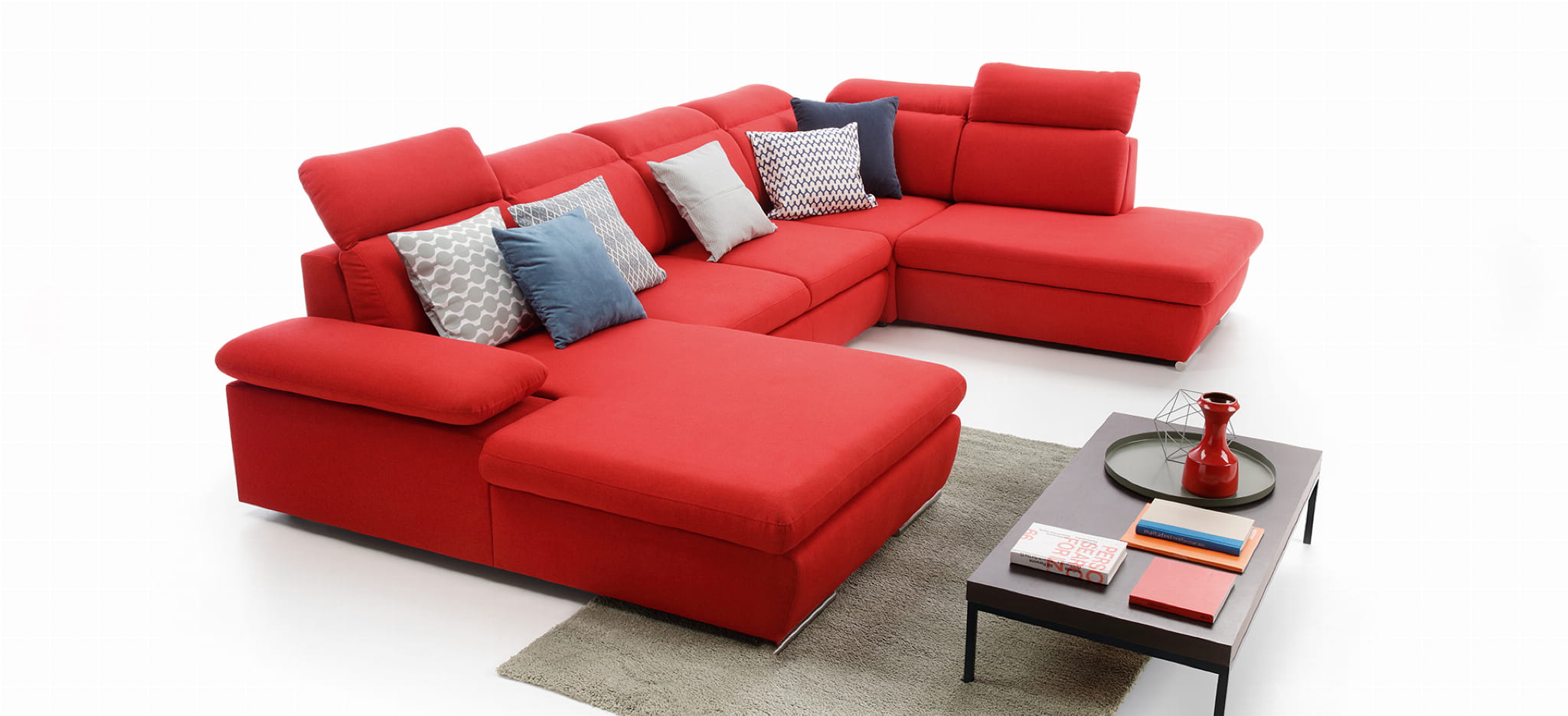 Większy brat narożnika Orlando.Narożnik w formie litery U. Jest stworzony dla dużych wnętrz i dużych rodzin, na wieczornym seansie filmowym pomieści całą rodzinę i domowego pupila. Posiada funkcję spania i pojemnik na pościel, więc nie potrzebny jest pokój gościnny, w razie niezapowiedzianej wizyty znajomych na weekend. Duża powierzchnia wypoczynku, klasyka designu i funkcjonalność, to narożnik idealny!