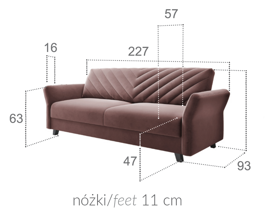 Wersalka rozkłada się w prosty, doskonale znany sposób, tzn. poprzez uniesienie siedziska do momentu usłyszenia charakterystycznego kliknięcia, zastosowanego w tym meblu mechanizmu. Dodatkowym ułatwieniem jest tzw. „automat od ściany”. Oznacza to, że nie musimy odsuwać mebla od ściany, aby go rozłożyć. Specjalny mechanizm odchyli na chwilę ruchomą część kanapy ku przodowi.