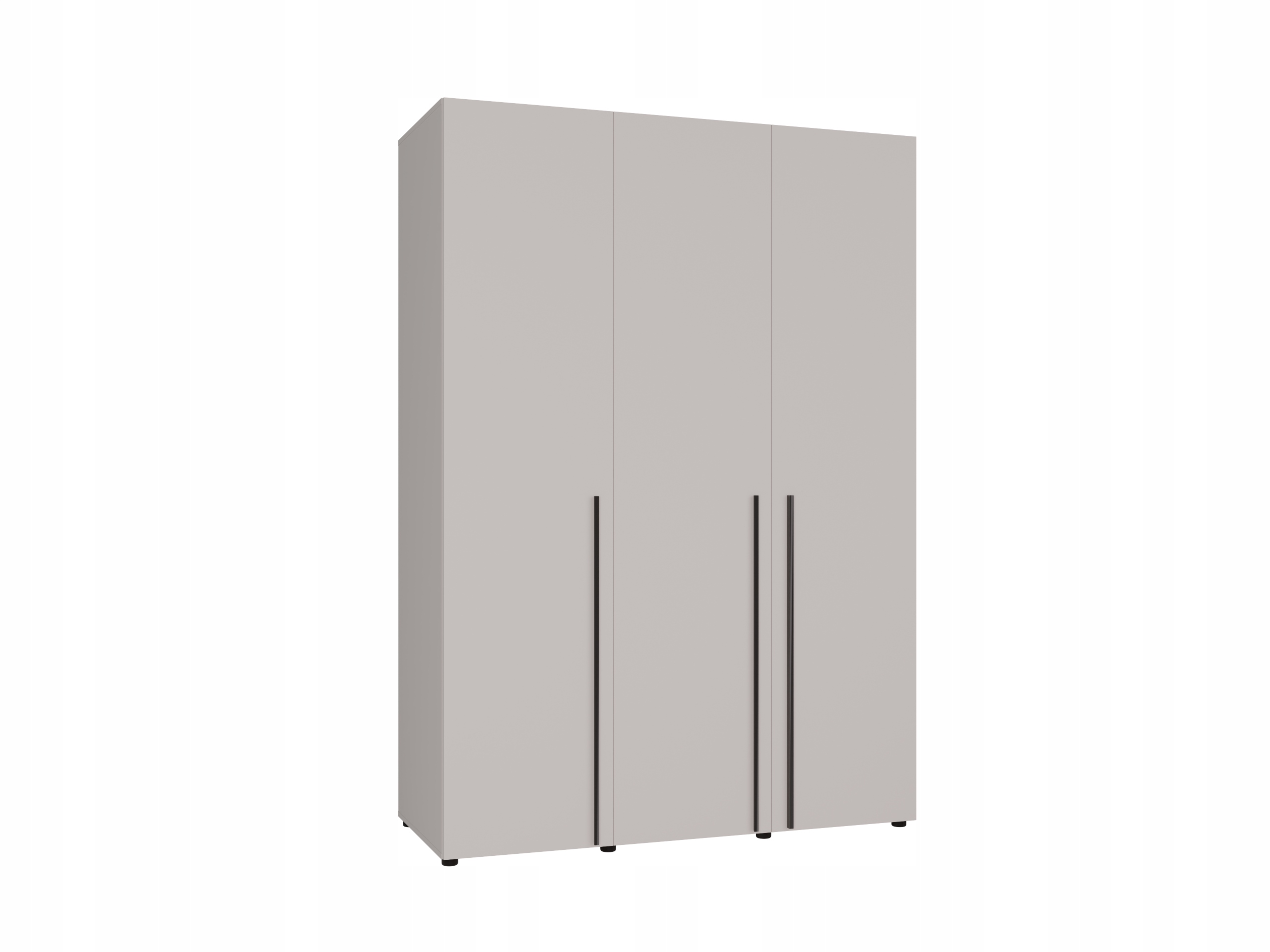 Elegancka szafa uchylna o szerokości 150 cm to praktyczny wybór dla osób ceniących nowoczesny design i wygodę w codziennym użytkowaniu. Wykończona w modnym odcieniu kaszmir, z czarnymi uchwytami i niskimi nóżkami, świetnie wpisze się w aranżację sypialni, garderoby czy przedpokoju, łącząc funkcjonalność z ponadczasowym stylem.