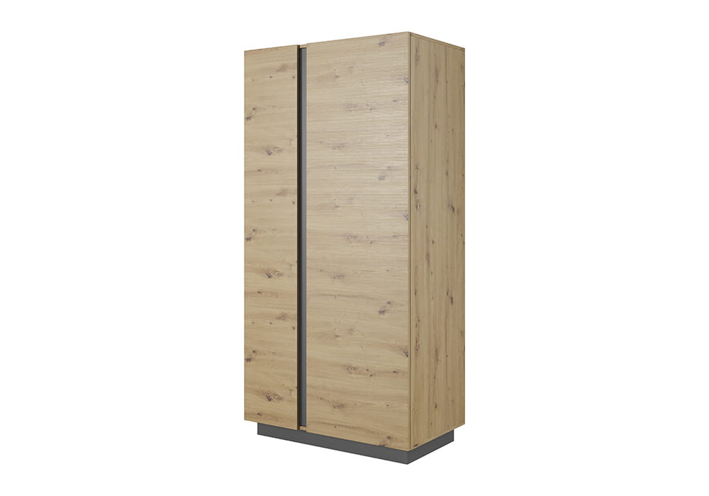 meble w prostej bryle i kompozycji, ozdobione dekorami w kolorze grafitu lub dębu grandson. Kolekcja w dwóch wybarwieniach ciepłym artisanie lub śnieżnobiałym białym połysku.