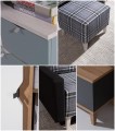 Meble tapicerowane w dwóch wariantach kolorystycznych, ciemna i jasna kratka.