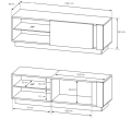 meble w prostej bryle i kompozycji, ozdobione dekorami w kolorze grafitu lub dębu grandson. Kolekcja w dwóch wybarwieniach ciepłym artisanie lub śnieżnobiałym białym połysku.