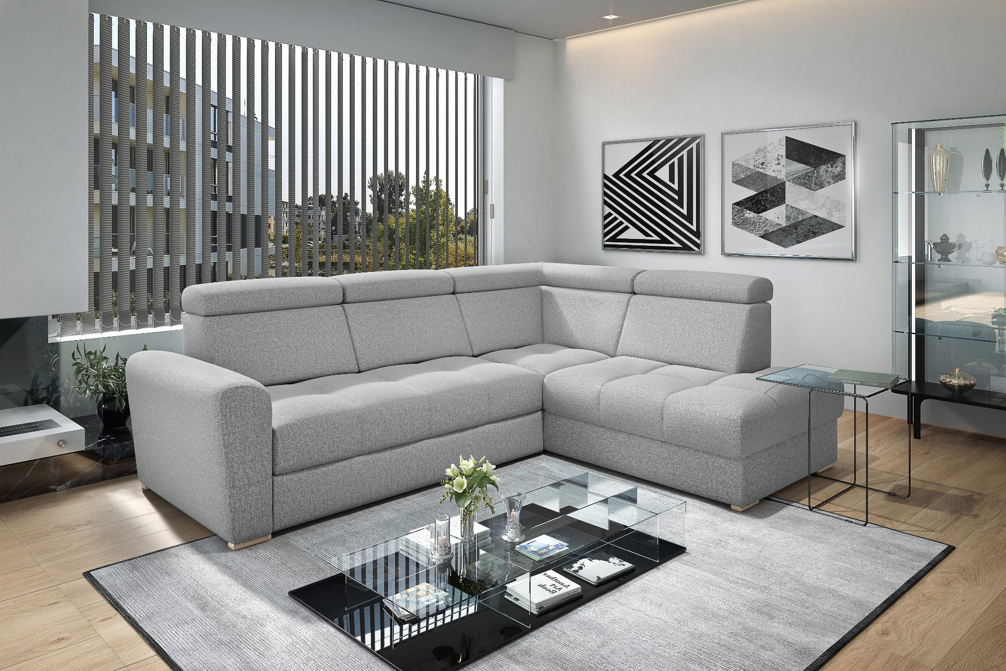 Szary Narożnik Modułowy z funkcją spania RIVA 4 regulowane zagłówki