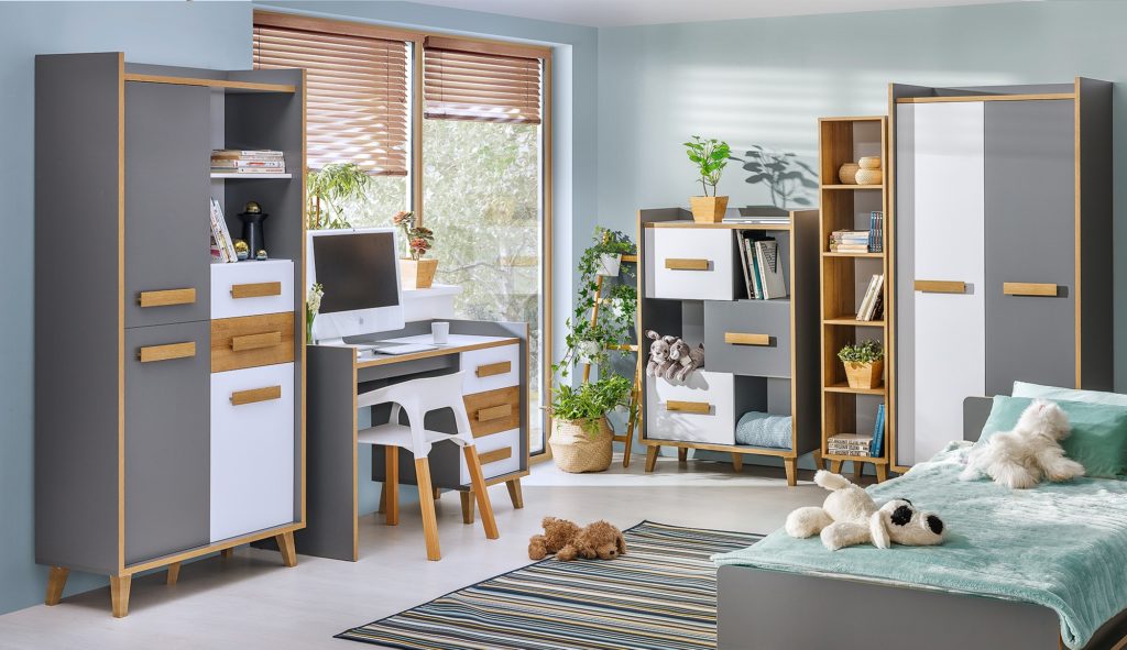 meble stworzone z myślą o nastolatkach, którzy są jednymi z najbardziej wymagających klientów. Kolekcja wykonana w trzech kolorach będzie pasowała do każdego pokoju a dzięki dużej powierzchni przechowywania nie zabraknie miejsca na ważna rzeczy.