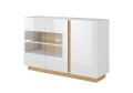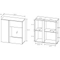 meble w prostej bryle i kompozycji, ozdobione dekorami w kolorze grafitu lub dębu grandson. Kolekcja w dwóch wybarwieniach ciepłym artisanie lub śnieżnobiałym białym połysku.