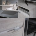Drugim kolorem tej kolekcji jest dąb biały. Biel, która jest kolorem ponadczasowym i świetnie odnajduje się w większości wnętrz. Lecz, żeby nie było nudno, dąb biały posiada zarysowania słojów drewna, dzięki temu meble mają charakter, nie są wtopione w tło pomieszczenia, lecz jego ozdobą. W tym kolorze, możemy wybrać dwa kolory wstawek biały połysk i grafitowy połysk.
