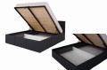 - łóżko posiada pojemnik na pościel otwierany za pomocą podnośników gazowych i stelaż z metalową ramą i drewnianymi żebrami