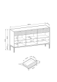 Prosta, ale elegancka forma z dekoracyjnym ryflowanym frontem to must have dla miłośników nowoczesnego designu. Metalowa podstawa nadaje lekkości konstrukcji a całość dopełniają ozdobne uchwyty w kolorze złotym.
