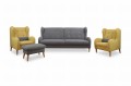 zestaw obejmuje wygodną kanapę trzyosobową, która posiada funkcję spania i pojemnik, oraz dwa fotele.